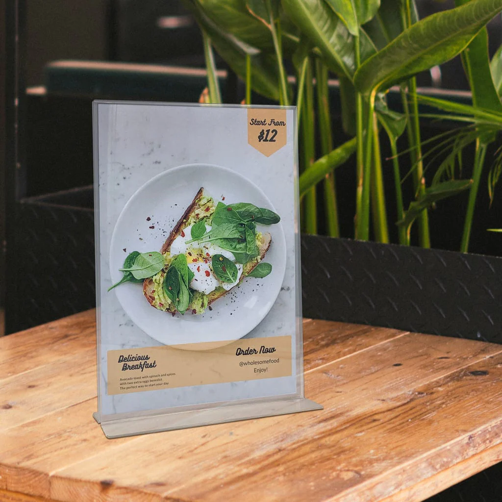 Not only are these durable, high-strength Acrylic T-Frames suitable for displaying photos, they're also ideal as a double-sided acrylic sign holder for point-of-sale table-top display purposes such as menu card holders, table tents, flyers, brochures, documents, price lists and signs.