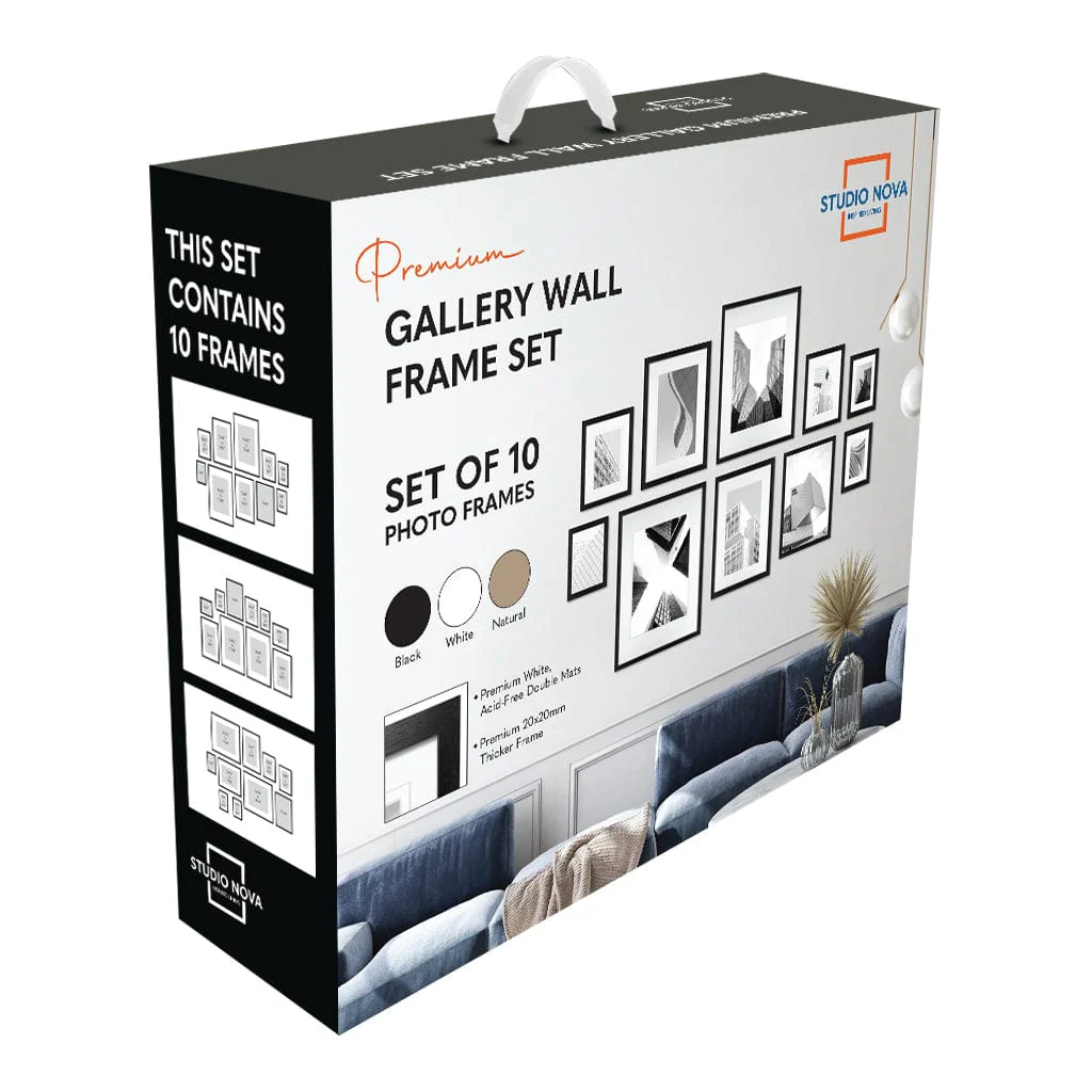With the Studio Nova 10-piece Gallery Wall Frame Set, transform ordinary walls into captivating showcases of artworks and memories.